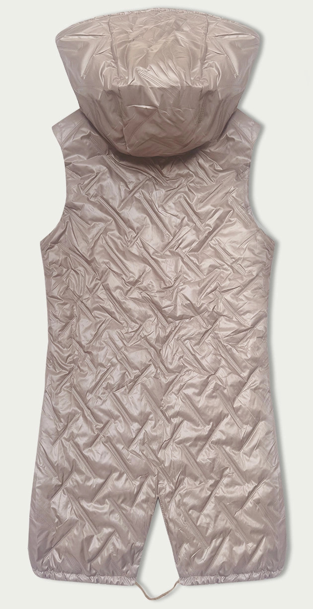 Věnujte prosím pozornost při výběru velikosti dle velikostní tabulky uvedené níže. Velikosti neodpovídají běžně nošené konfekci. Vesta s kapucí Vesta má trapézový střih, je lehce zateplená, má dvě kapsy a zapíná se dvoustranným zlatým zipem. Model má kapuci, kterou není možné odepnout. Spodní okraj modelu je asymetrický. Přední část vesty má délku pod boky a zadní část má délku do poloviny stehen. Složení: 100 % polyester.