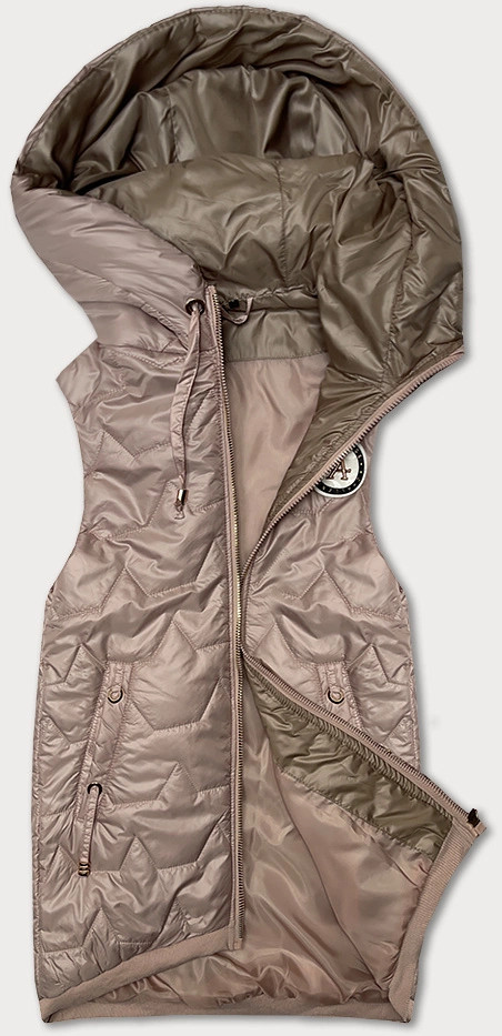Věnujte prosím pozornost při výběru velikosti dle velikostní tabulky uvedené níže. Velikosti neodpovídají běžně nošené konfekci. Vesta s kapucí Vesta má volný střih, je lehce zateplená syntetickou péřovou výplní, má dvě kapsy bez zapínání a zapíná se zlatým zipem. Model má kapuci, kterou není možné odepnout. Spodní část modelu je asymetrická. Vesta má délku pod boky. Složení: 100 % polyester.