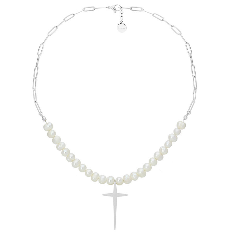 Perlový náhrdelník Sabrina - pravé perly, stříbro 925/1000, Zlatá Bílá 39 cm