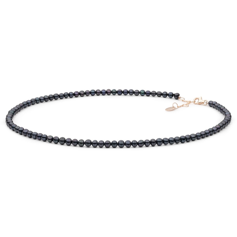 Černý perlový náhrdelník ze sladkovodních perel o velikosti 4–4,5 mm okouzlí na první pohled svou hlubokou tmavou barvou s jemným leskem. Každá perla je pečlivě vybraná a navlečená tak, aby vytvářela harmonický celek, který působí elegantně a zároveň moderně.Díky minimalistickému designu a kvalitnímu zpracování je tento náhrdelník skvělým doplňkem jak pro každodenní nošení, tak pro slavnostní příležitosti. Zapínání je vyrobeno ze stříbra 925/1000 a je pozlacené 14karátovým růžovým zlatem, které dodává šperku jemný nádech luxusu a originality.Tento náhrdelník perfektně doladí jak večerní róbu, tak i minimalistický outfit pro denní nošení. Udělejte radost sobě nebo blízké osobě jedinečným kouskem, který vynikne při každé příležitosti. 💡Tip: Černý perlový náhrdelník nádherně vynikne v kombinaci s jednobarevnou halenkou nebo šaty, ideálně ve světlých tónech, které zvýrazní jeho hloubku a eleganci.