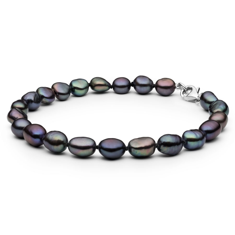 Tento jedinečný náramek z barokních černých perel oslní svou přirozenou krásou a variabilitou odstínů. Každá perla vyniká svým unikátním tvarem a leskem, který přechází od hluboké černé přes tajemné zelené a modré tóny až po jemné fialové odlesky. Spojení těchto perel s elegantním stříbrným zapínáním dodává šperku sofistikovaný a moderní vzhled. Barokní perly, známé svou nepravidelností a jedinečností, jsou symbolem originality a individuality. Tento náramek se skvěle hodí pro ženy, které chtějí vyniknout a dodat svým outfitům dotek luxusu a elegance. Díky svému decentnímu provedení je ideální jak pro každodenní nošení, tak pro zvláštní příležitosti. Černé perly jsou považovány za jedny z nejvzácnějších a jejich přirozená hra barev zaručuje, že tento náramek bude vždy přitahovat pozornost. Perfektní dárek pro milovnice unikátních šperků nebo stylový doplněk pro váš vlastní šatník.