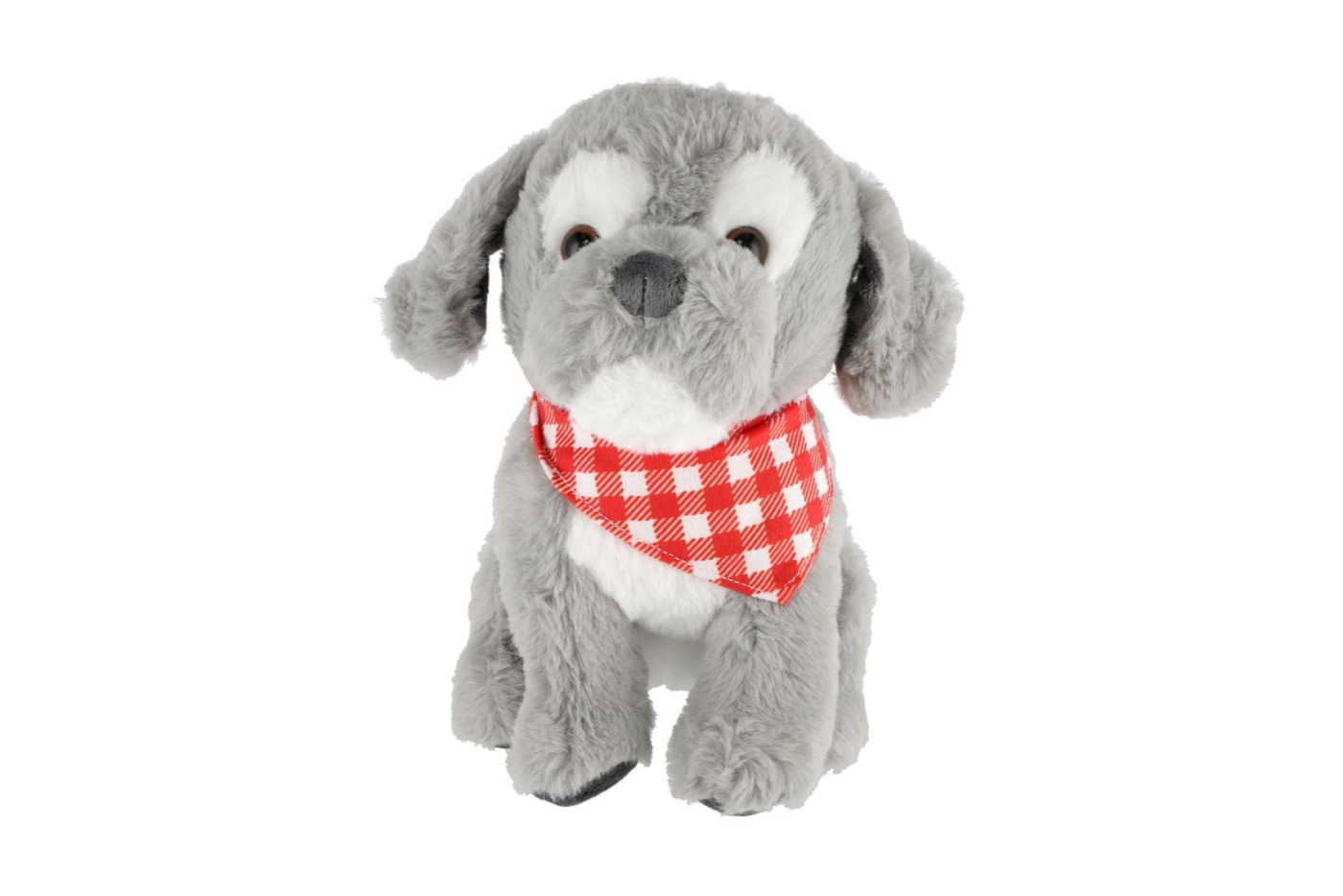 Roztomilý plyšový pejsek v šedivé barvě s měkkou srstí a stylovým šátkem je ideální mazlíček pro malé i velké milovníky zvířátek. Ideální společník na hraní, mazlení i usínání! Velikost: 26 cm Vhodné pro děti od narození