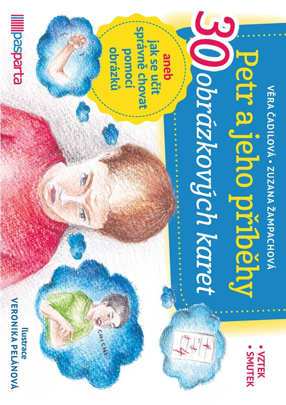 Děti s autismem (ale nejen ony) mívají deficity v sociální oblasti. Nejsou si jisty, jak se mají v určitých situacích chovat, např. jak se společensky přijatelným způsobem vypořádat s emocemi vzteku nebo smutku. Jeden ze způsobů, jak dětem situace ukázat a vysvětlit, jak je naučit se správně chovat, jsou krátké příběhy. Vizuální formou podporují spolehlivou a smysluplnou výměnu informací mezi rodiči, pedagogy, pečujícími osobami a lidmi s autismem všech věkových kategorií. Tato sada 30 obrázkových karet obsahuje situace „Co dělat, když jsem zklamaný, naštvaný nebo nešťastný“ a „Co dělat, když mám na někoho vztek“. Vystupuje v nich hlavní hrdina Petr, který již chodí do školy a kterého poznáte podle jeho červeného trička. Pomocí karet lze nacvičit společensky přijatelné reakce na dané emoce.