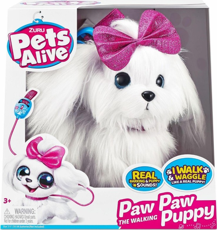 Roztomilé chlupaté štěňátko Lil Paw. Jeho hedvábně jemná srtst je jako stvořená na česání a mazlení. Štěká jako skutečný pejsek, chodí pomocí vodítka a vrtí ocáskem! Potřebné baterie 3× AA (baterie nejsou součástí balení).