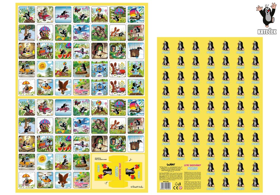 Pexeso Krtek vystřihovací Letní radovánky Vystřihovací pexeso Krtek a kamarádi. Pexeso je tradiční stolní hra, která slouží k procvičování paměti a soustředění. Hra rozvíjí schopnost zapamatovat si, kde se jednotlivé obrázky nacházejí, a podporuje tak kognitivní dovednosti, především paměť a koncentraci. Pexeso je oblíbené mezi dětmi, ale také dospělými, protože je zábavné a jednoduché na pochopení.Návod ke hře pexeso:Pexeso mohou hrát nejméně dva hráči. Všechny rozstříhané kartičky se zamíchají a rozloží obrázkem dolů do čtverce 8 x 8 kartiček. Nesmí se při tom dívat na obrázek. Hráči si určí pořadí hry. Hráči postupně otáčejí vždy dvě kartičky s cílem najít dvojice se stejnými obrázky. Pokud hráč najde dvojici, ponechá si ji a pokračuje v tahu. Pokud ne, kartičky se otočí zpět lícem dolů a hraje další hráč.Cílem hry je nasbírat co nejvíce dvojic, a tím se stát vítězem.Papír: křída matná 350 g + lamino lesk 1/1Velikost hracích karet: 51 cm x 51 cm