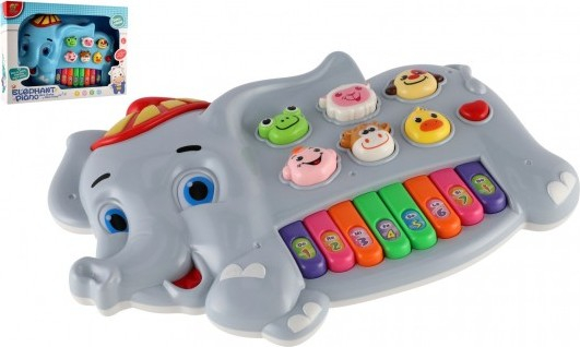 Originální barevné elektronické piano z plastu se zvuky zvířátek a s melodiemi ve tvaru slona. Baleno v krabici. Hračka na baterie se zvukem a světlem. Hračky pro miminka mají krásný vzhled, jsou lehké a navíc fungují jako aktivní hračky - stimulují dítě vizuálně i prostřednictvím hmatu. Rozměry balení 32 x 23 x 6 cm. Vhodné pro děti od 3 let.