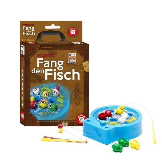 Hra Rybolov v cestovním provedení. Zahrajte si na rybáře a rybičky! Úkolem je ulovit rybičky v rybníčku pomocí prutu. Vhodné od 4 let.