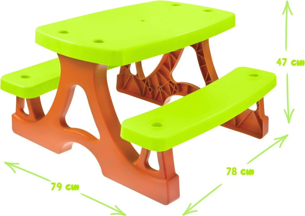 Piknikový stolek se dvěmi lavicemi z kvalitního plastu žluto-fialový. Rozměr 79×78×47 cm.