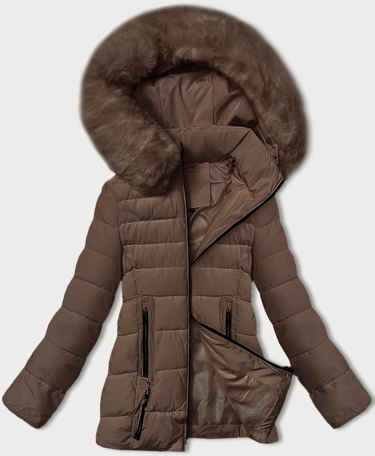 Dámská prošívaná bunda v kakaové barvě pro přechodné období s kožešinou u kapuce S'west (B8301-48) odstíny hnědé XL (42)