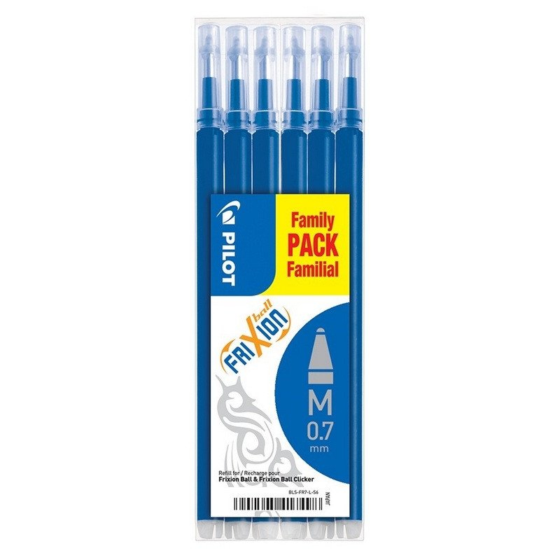 Praktická sada 6 náplní pro gumovací pera FriXion Ball 07 a FriXion Clicker 07. Náplně vám pomohou ušetřit peníze za nákup nových per a díky většímu balení jsou také o něco ekologičtější. Takže teď už neexistuje žádný důvod nevyměňovat náplně!