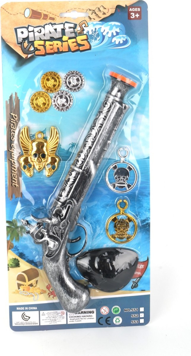 Každý malý pirát zaručeně ocení patřičnou pirátskou výbavu, a proto potřebuje tuto pistoli. Pravá pirátská bitva může začít! Pistoli a doplňky v balení lze také použít jako karnevalový doplněk ke kostýmu!