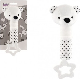 Plyšové pískátko pro miminka, hračka píská a má plastové kousátko. Každé miminko si tuto hračku jistě zamiluje. Velikost hračky: 22 cm Vhodné pro děti od narození