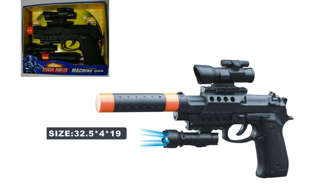 Pistole s oddělitelným tlumičem, světlem a zvukem.