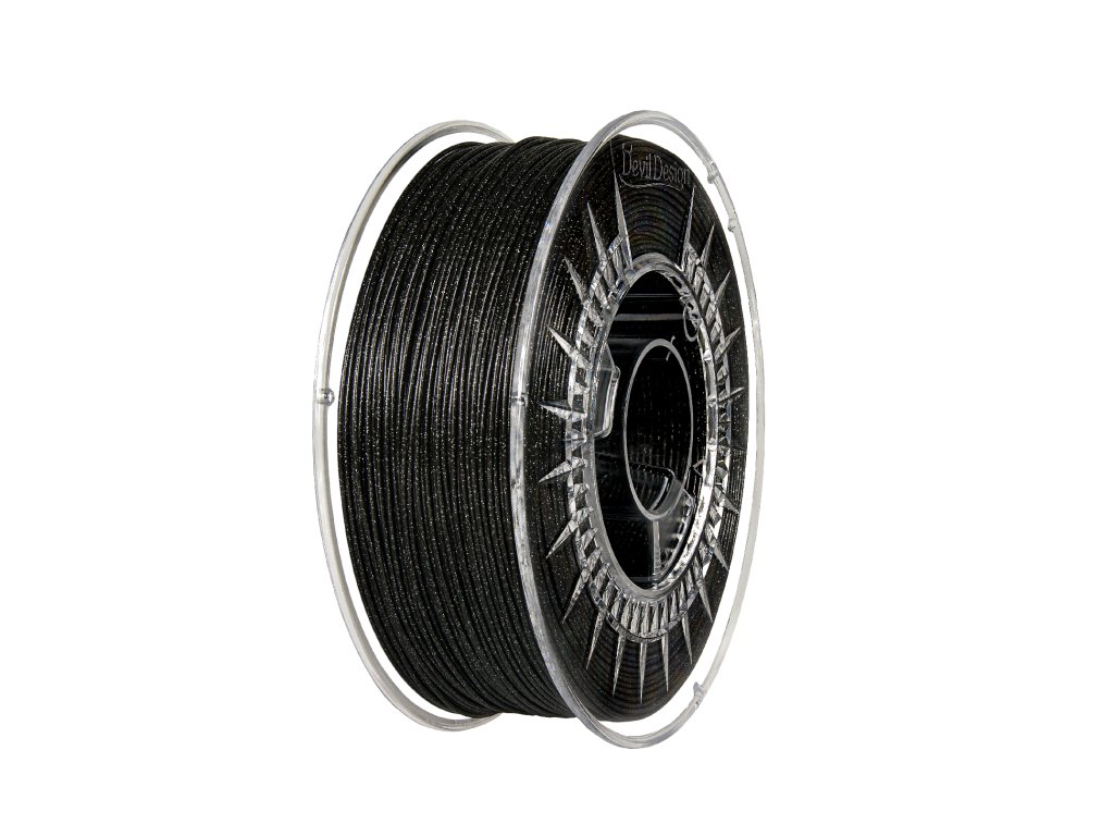 Univerzální volba pro spolehlivý a kvalitní 3D tisk. Třpytivá černá tisková strunaPLA od polského výrobce Devil Design je skvělou volbou pro každého, kdo hledá spolehlivý a snadno tisknutelný materiál. Díky své pevnosti, tvrdosti a mírné pružnosti je PLA ideální nejen pro hobby použití, ale také pro prototypování nebo výrobu dekorativních i funkčních dílů. ⚠️ Upozornění: Při tisku filamentů s třpytkami doporučujeme použít trysku s větším průměrem než 0,4 mm, alespoň 0,5, ideálně 0,6 mm. Proč právě PLA od Devil Design? Velmi kvalitní výtisky i při vyšších rychlostech Krásné, syté a jasné barvy – široká paleta odstínů pro každou aplikaci Přesnost výroby: průměr 1,75 mm s tolerancí ±0,05 mm Univerzální použití: ideální i pro tisk větších objektů Pevný a odolný materiál, snadný na tisk na jakékoli FMD 3D tiskárně i bez vyhřívané komory Ekologické složení (bioplast z obnovitelných zdrojů) Vakuově baleno s pohlcovačem vlhkosti a štítkem s doporučeným nastavením tiskových teplot Dodáváno v praktické kartonové krabici – ideální pro skladování Technické parametry a specifikace: Materiál: PLA (polylactic acid, kyselina polymléčná) Průměr: 1,75 mm ±0,05 mm Barva: Galaxy Black (černá s třpytkami, RAL 9017) Hmotnost: 1 kg filamentu, 1,4 kg včetně cívky a obalu Teplota tisku: 200–230 °C Teplota podložky: 0–60 °C (doporučeno) Průměr cívky: 200 mm Vnitřní otvor cívky: 52 mm Šířka cívky: 70 mm ⚠️ Upozornění: PLA je náchylné na vlhkost – vždy skladujte v suchém prostředí, ideálně v zipovém sáčku se silikagelem. V případě navlhnutí doporučujeme filament vysušit v troubě nebo v sušičce filamentů. Příklady využití PLA filamentů Devil Design: Dekorace a interiérové doplňky – vázy, obaly na květináče, stojánky Prototypy a modely – součástky, testovací výtisky, inženýrské návrhy Herní komponenty a miniatury – figurky, kostky, herní tokeny Praktické předměty pro domácnost – háčky, držáky, boxy Reklamní a dárkové předměty – loga, nápisy, personalizované výrobky