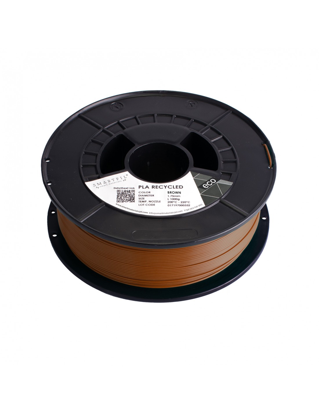 VŠECHNA RECYKLOVANÁ PLA od značky SMARTFIL nesou označení HIGH-SPEED, jsou tedy kompatibilní s vysokorychlostními tiskárnami. 100% recyklované a biologicky odbouratelné vlákno PLA v novém recyklovatelném obalu. Nová udržitelnější a ekologičtější sada filamentů, která neztrácí své vlastnosti a kvalitu vlákna při tisku za vynikající cenu. Nové balení s recyklovatelnou lepenkovou krabicí a kartonovou cívkou. Jedná se o biologicky rozložitelný filament vhodný pro všechny typy 3D tiskáren. Tiskne se s ním velmi jednoduše, nesmršťuje se a dají se s ním proto tvořit i velké předměty. S materiálem PLA od tohoto výrobce dosáhnete skvělých výsledků v krásných živých barvách. Průměr struny (tolerance průměru): 1,75 mm (±0,03 mm) Pracovní teplota: 190 - 220 °C Teplota podložky: 0 - 60 °C Velikost balení: 1 kg Barva: hnědá (brown, RAL 8023) Vlastnosti PLA RECYCLED od SMARTFIL: 100% recyklovaný 100% recyklovatelné lepenkové obaly Biologicky rozložitelný (kompostovatelný) Vynikající mechanické vlastnosti a vysoká kvalita při 3D tisku Srovnání s původním PLA: Větší mechanická odolnost Vyšší teplotní rozsah tisku 190 °C - 220 °C Větší tekutost