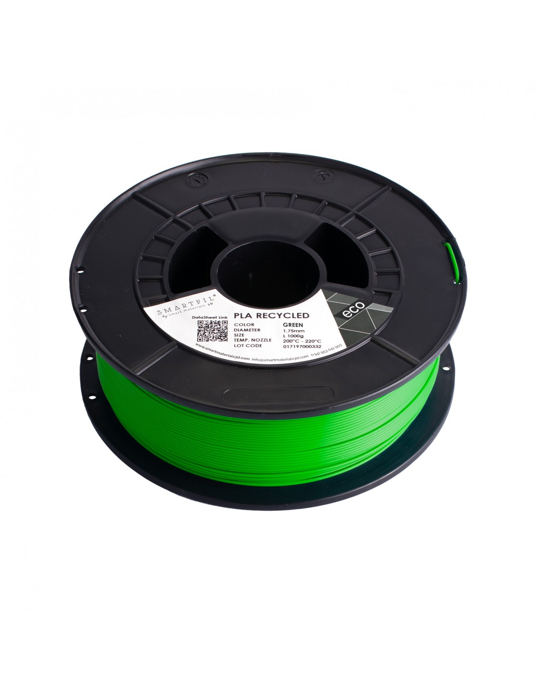VŠECHNA RECYKLOVANÁ PLA od značky SMARTFIL nesou označení HIGH-SPEED, jsou tedy kompatibilní s vysokorychlostními tiskárnami. 100% recyklované a biologicky odbouratelné vlákno PLA v novém recyklovatelném obalu. Nová udržitelnější a ekologičtější sada filamentů, která neztrácí své vlastnosti a kvalitu vlákna při tisku za vynikající cenu. Nové balení s recyklovatelnou lepenkovou krabicí a kartonovou cívkou. Jedná se o biologicky rozložitelný filament vhodný pro všechny typy 3D tiskáren. Tiskne se s ním velmi jednoduše, nesmršťuje se a dají se s ním proto tvořit i velké předměty. S materiálem PLA od tohoto výrobce dosáhnete skvělých výsledků v krásných živých barvách. Průměr struny (tolerance průměru): 1,75 mm (±0,03 mm) Pracovní teplota: 190 - 220 °C Teplota podložky: 0 - 60 °C Velikost balení: 1 kg Barva: zelená (green, RAL 6038) Vlastnosti PLA RECYCLED od SMARTFIL: 100% recyklovaný 100% recyklovatelné lepenkové obaly Biologicky rozložitelný (kompostovatelný) Vynikající mechanické vlastnosti a vysoká kvalita při 3D tisku Srovnání s původním PLA: Větší mechanická odolnost Vyšší teplotní rozsah tisku 190 °C - 220 °C Větší tekutost