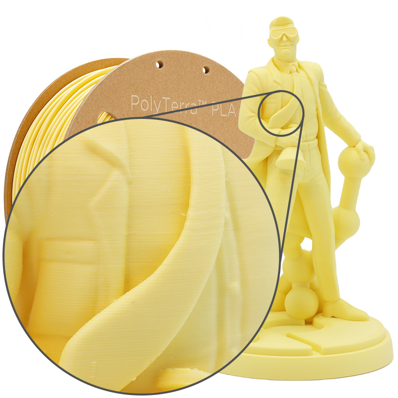 PolyTerra ™ PLA je nová ekologičtější generace filamentů od společnosti Polymaker, která je od základu navržena tak, aby byla šetrná k životnímu prostředí. Je kombinací organických minerálů a PLA, což výrazně snižuje obsah plastů a vytváří ekologičtější 3D tiskový materiál. Tento materiál se tiskne stejně jako PLA, takže nebudete muset měnit žádná tisková nastavení. Navíc v některých vlastnostech (například přemostění nebo převis) dosahuje lepších výsledků než klasické PLA. Výsledný výtisk má krásně matný povrch, což lépe skryje linie vrstev. Mechanické vlastnosti PolyTerra ™ nabízejí širokou škálu potenciálních aplikací, protože materiál je tvrdší než běžné PLA, ale zároveň si udržuje stejnou tuhost jako PolyMax PLA. Mimořádná houževnatost tohoto materiálu vám umožní tisknout cokoli od figurek až po různá příslušenství. Vyznačuje se také velmi snadným odstraněním podpor. To vše umožňuje posouvat hranice vašich výtisků a vytvářet stále složitější modely, které jsou funkční, odolné a matné. Výsledné výtisky lze snadno brousit. V nabídce jsou 4 pastelové barvy a 10 přírodních barev, které jsou inspirovány přírodou. PolyTerra ™ se navíjí na plně recyklovanou lepenkovou cívku. Při balení produktu se také používají recyklované krabice a štítky. Informační list a letáčky naleznete pouze online, aby se snížil objem odpadu. Za každou prodanou cívku zasadí společnost Polymaker jeden strom, aby se snížila uhlíková stopa po výrobě tohoto produktu. Jakmile strom dosáhne dospělosti, má schopnost nasát každý rok 22 kg oxidu uhličitého a vyrovnat tak 4 kg potřebné k vytvoření PolyTerra ™. Specifikace: Teplota trysky: 190 °C – 230 °C Teplota podložky: 25 °C – 60 °C Teplota skelného přechodu (hranice použitelnosti): 60,6 °C Modul pružnosti v tahu: 1882 ± 141 MPa Mez pevnosti v tahu: 20,9 ± 2,0 MPa Pevnost v ohybu: 39,6 ± 1,1 MPa Rázová houževnatost Charpy:5,7 ± 0,4 kJ/m2 Balení: 1 kg Šířka struny: 1,75 mm Balení: šířka cívky 6,5 cm, délka cívky: 20 cm, váha balení včetně obalu: 1,4 kg. ENG PolyTerra-PLA is a new and ecological generation of filaments from Polymaker, designedto be environmentally friendly. It is a combination of organic minerals and PLA, which significantly reduces the content of plastics and creates a more environmentally friendly 3D printing material. This material works the same way as PLA, so you don't need to change any printing settings. In addition, for example when using bridging or overhangs, it achieves better results than "normal" PLA. The final model has a beautiful matt color, which hides the layer lines well. The mechanical properties of PolyTerra ™ offer a wide range of potential applications, as the material is harder than conventional PLA, but at the same time maintains the same rigidity as PolyMax PLA. The extraordinary toughness of this material allows you to print anything from figures to various accessories. It is also characterized by very easy removal of supports. All this allows you to push the boundaries of your printouts and create increasingly complex models that are functional, durable and matte. Printouts can be easily sanded. There are 4 pastel colors and 10 natural colors fully inspired by nature. PolyTerra ™ is wound on a fully recycled cardboard spool. Recycled boxes and labels are also used for packaging. The information sheet and leaflets can only be found online to reduce waste. On top of that, for each spool sold, Polymaker will plant one tree to reduce the carbon footprint of this product. Once a tree reaches adulthood, it has the ability to absorb 22 kg of carbon dioxide each year to balance the 4 kg needed to create PolyTerra ™. Specifications: Nozzle temperature: 190 °C - 230 °C Heated bed temperature: 25 °C - 60 °C Glass transition temperature (serviceability limit): 60 °C Modulus of elasticity in tension: 1882 ± 141 MPa Tensile strength: 20,9 ± 2,0 MPa Flexural strength: 39,6 ± 1,1 MPa Charpy impact strength: 15,7 ± 0,4 kJ/m2 Packaging: 1 kg Width: 1.75 mm Package: spool width 6,5 cm, lenght: 20 cm, weight of produc including packaging: 1,4 kg.