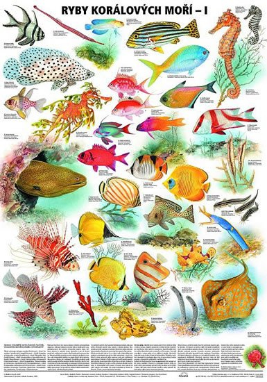 Pro náročné akvaristy zabývající se chovem ryb korálových útesů jsou určeny dvě naše nástěnné tabule. První tabule zobrazuje zástupce rejnoků, holobřichých, sumců, ďasů, pilonošů, volnoostných, ropušnicotvarých a ostnoploutvých. Ilustrovali manželé Knotkovi, text RNDr. Jindřich Novák, šéfredaktor časopisu Akvárium, terárium
