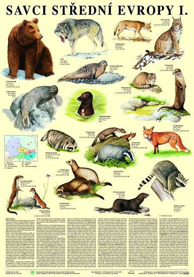 První tabule série představující savce střední Evropy se věnuje řádu šelem. Formát:67x96 cm, tabule plakát
