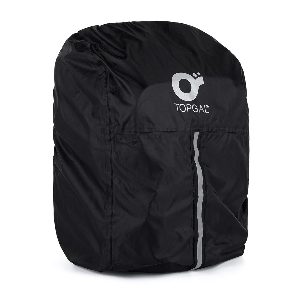 Pláštěnka na školní a studentské batohy s logem Topgal. Reflexní pruh na přední straně pláštěnky zaručí zvýšenou viditelnost i ve zhoršených světelných podmínkách (v děšti, za tmy).