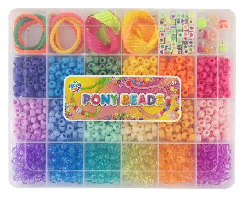 Kompletní sada plastových korálků (cca 1400 ks) v praktické krabičce obsahuje barevné kulaté i čtvercové korálky, tkaničky a zarážky. Ideální pro výrobu náramků, náhrdelníků a klíčenek. Vhodné pro děti i kreativní tvoření doma i ve škole.