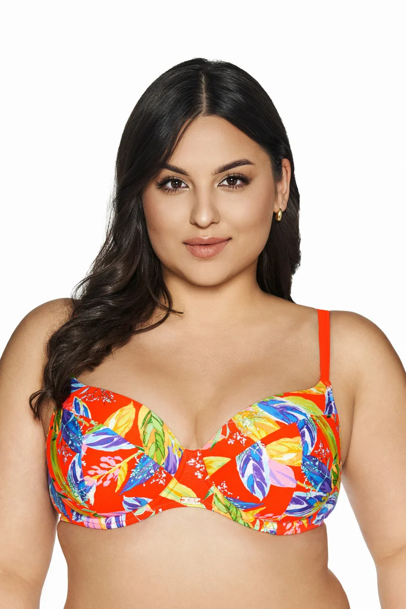 Biustonosz kąpielowy 226 FULL CUP Biustonosz kąpielowy 226 FULL CUP wykonany jest z elastycznego materiału w energetycznych kolorach lata, łącząc neonową czerwień z różnorodnym motywem kwiatów. Usztywnione miseczki z fiszbinami doskonale podtrzymują i wyeksponują biust, zapewniając jednocześnie wygodę i styl. Cechy produktu: Elastyczny materiał: Zapewnia komfort i idealne dopasowanie. Energetyczne kolory lata: Neonowa czerwień i kwiatowy wzór dodają stroju żywiołowości i letniego uroku. Usztywnione miseczki z fiszbinami: Gwarantują doskonałe podtrzymanie i uniesienie biustu, uwydatniając dekolt. Dodatki w kolorze różowego złota: Blaszka i zapięcie w kolorze różowego złota dodają szyku i elegancji. Dlaczego warto wybrać biustonosz kąpielowy 226 FULL CUP?