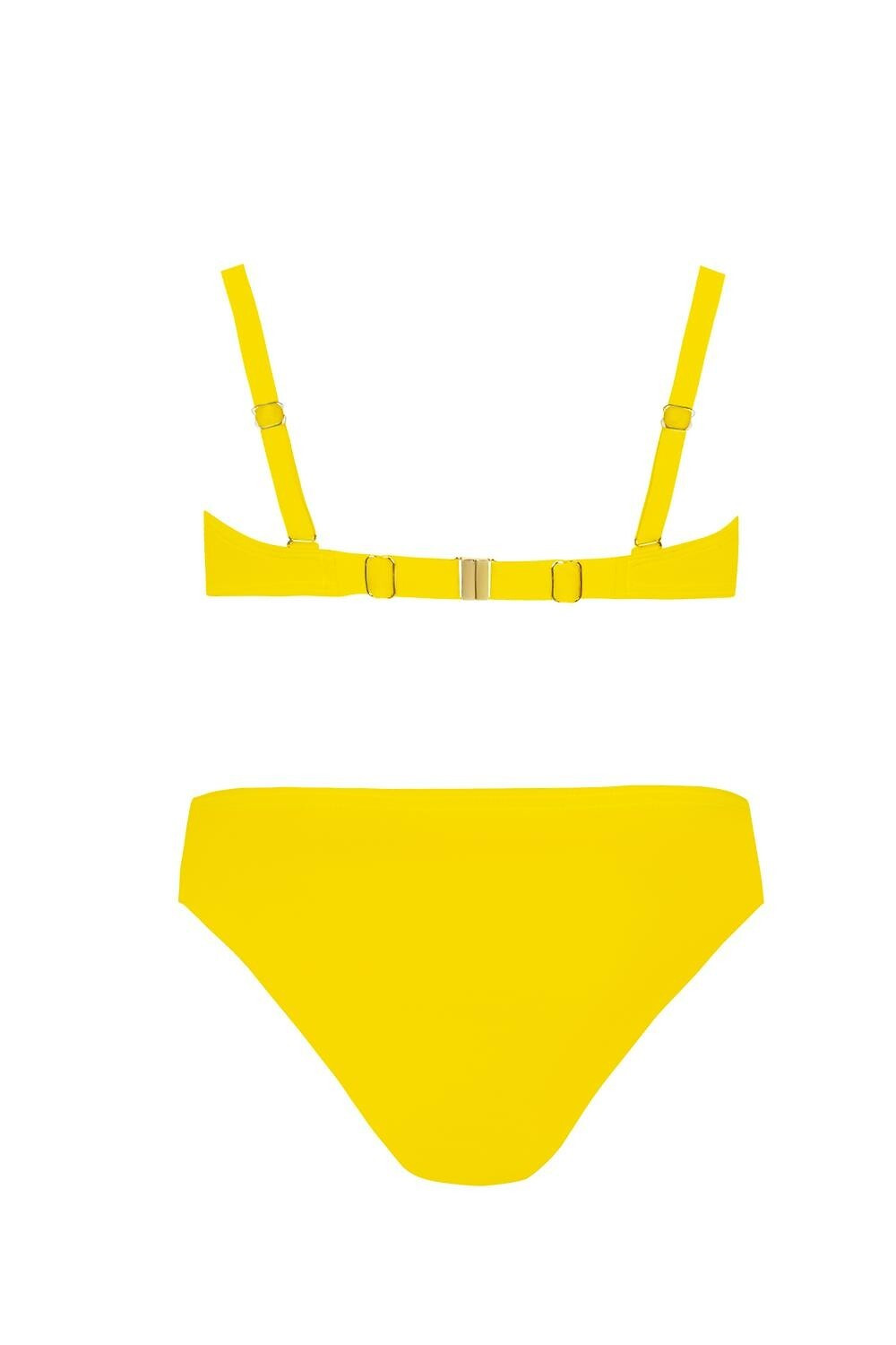 Plavky, dvoudílné - hladká podprsenka, s vyztuženými košíčky, s kosticemi - push-up ve velikostech: 36C/D, 38B/C, 40B/C, 42B - odepínací, nastavitelná ramínka - zadní část s nastavitelným obvodem, zapínání na kovovou sponu- hladké kalhotky - odolné vůči chlóru Složení: 85 % polyamid, 15 % elastan