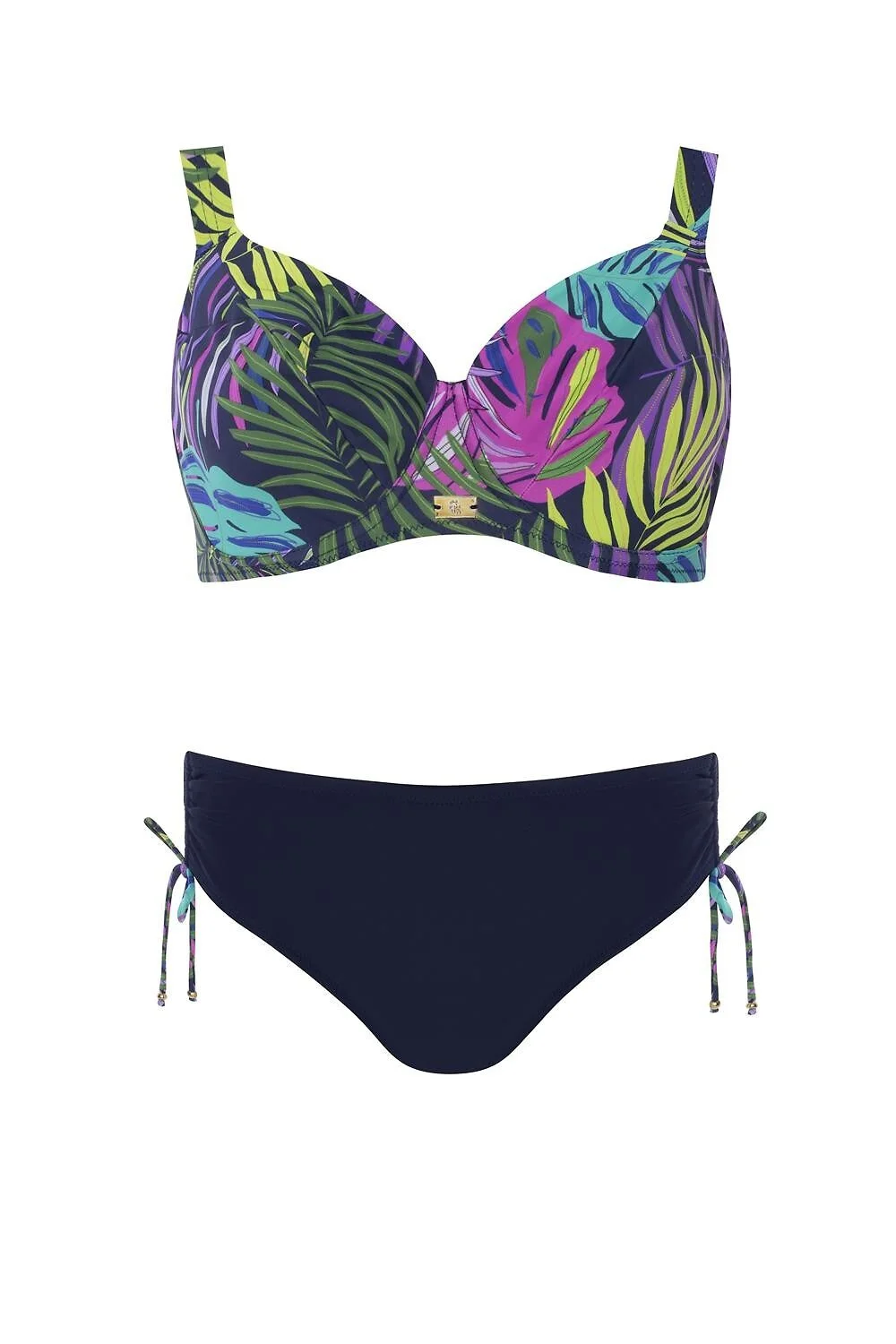 Dámské dvoudílné plavky - košíčky s kosticemi - měkké košíčky, plný střih - poskytuje výjimečné pohodlí a oporu - květinový potisk - široká, nastavitelná ramínka - obvod s kovovou sponou - pevné kalhotky jsou součástí balení - s bočními vázáními - odolné vůči chlóru Složení: 85 % polyamid, 15 % elastan