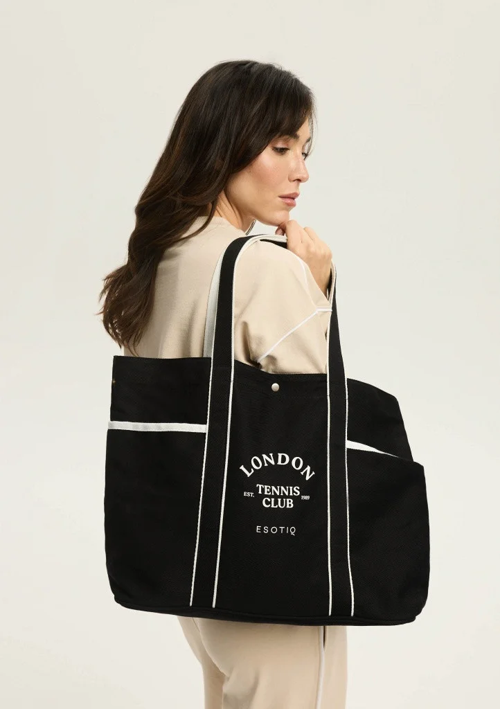 Látková letní taška značky Esotiq je praktickým doplňkem na pláž nebo k bazénu, nabízí dostatek prostoru pro všechny nezbytnosti a chrání je před pískem. Uvnitř se nachází vnitřní kapsa, zapínání je na kovový cvok. Z vnější strany má po obvodu kapsy na opalovací krém, oblíbenou knihu a jiné nezbytnosti na pláž. Dno tašky je zesílené a dobře drží tvar. Materiálové složení: 90% bavlna, 10% polyester