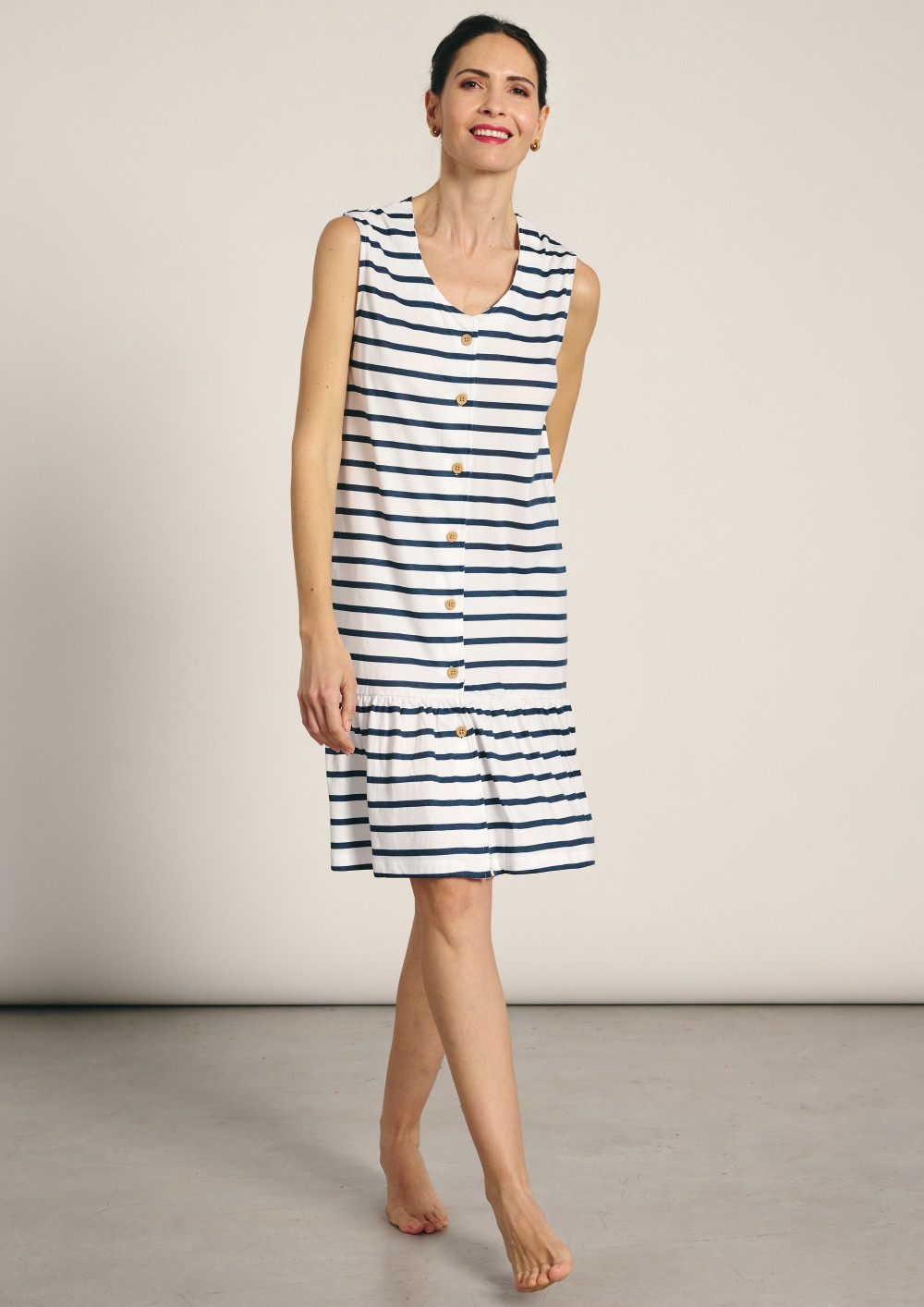 Dámské plážové šaty značky Muydemi. Šaty jsou vyrobeny z jemné bavlny, ideální pro horké letní dny. Šaty jsou volné, jednoduchého střihu s délkou nad kolena. Šaty jsou propínací a mají kulatý výstřih. Šaty mají široké ramínka. Materiálové složení: 95% bavlna, 5% elastan