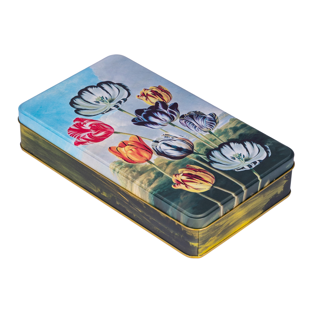 Stylová plechová dóza z s vyobrazením tulipánů má všestranné praktické využití. Můžete do ní uložit sladkosti, cukroví či jiné potraviny, nejrůznější poklady a další domácí drobnosti. Dóza je vyrobena ze 100% oceli s cínovou vrstvou.