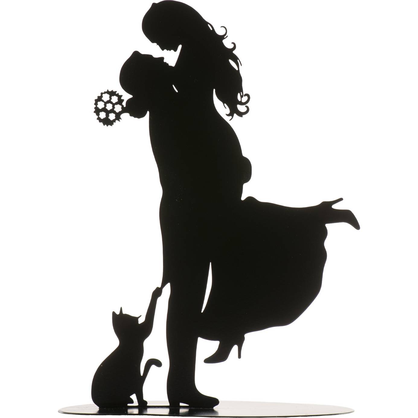 Plechová figurka na svatební dort silueta s kočkou 18cm - Dekora