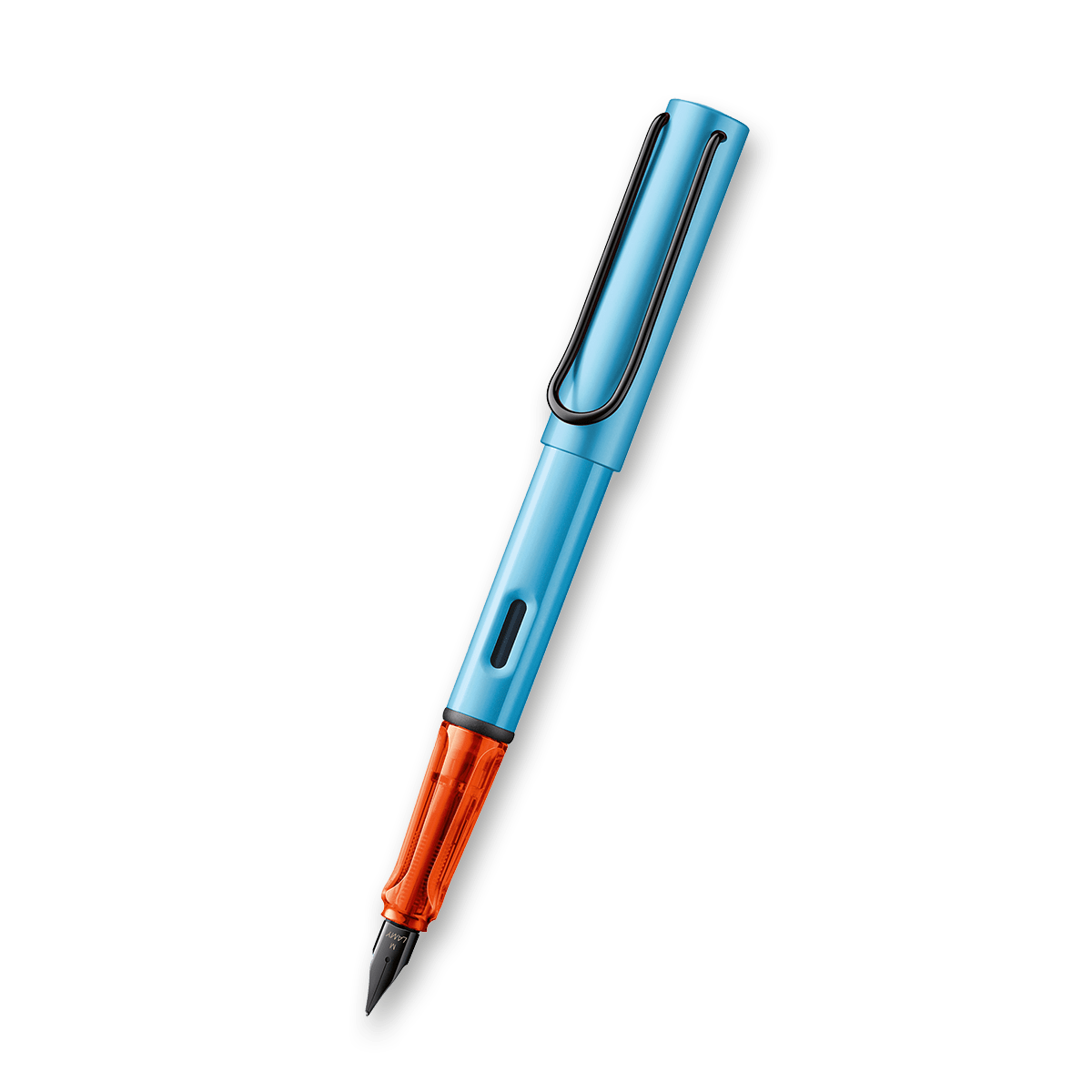 Plnicí pero Lamy AL-star Denim je atraktivní psací nástroj, který splňuje i ty nejvyšší požadavky. Tělo pera je vyrobené z lehkého eloxovaného hliníku a dodává tak psaní lehkost. ergonomicky upravená transparentní úchopová zóna, odpružený kovový klip, nasazovací víčko, hrot z leštěné nerezové oceli, možnost použití jak inkoustových bombiček, tak i plnění pera inkoustem z lahvičky, Dodáváno s modrou bombičkou. Zakupte produkt Plnicí pero Lamy AL-star Denim - F z kategorie Psací potřeby | Značkové psací potřeby | Lamy | Plnící pera od výrobce Lamy za cenu 769 Kč.