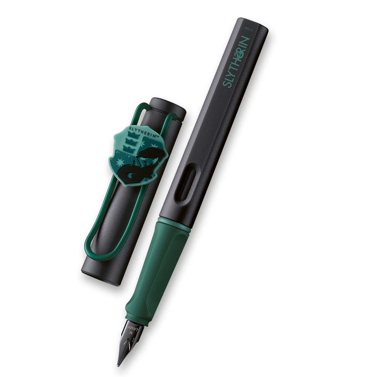 Plnicí pero LAMY safari Harry Potter Slytherin je atraktivní psací nástroj, který kombinuje funkčnost s jedinečným designem inspirovaným bradavickou kolejí Slytherin (Zmijozel) ze světa Harry Potter. Tělo pera je vyrobeno z tvrzeného ABS plastu, má nasazovací víčko a odpružený kovový klip, na kterém je zelený zdobný prvek se symbolem hada. Úchopová zóna je ergonomicky upravená, hrot je z nerezové oceli. LAMY safari je ideálním doplňkem pro každého fanouška Harryho Pottera, který ocení spojení tradice a moderního designu. Plnicí pero:, ergonomicky upravená transparentní úchopová zóna, odpružený kovový klip, nasazovací víčko, hrot z leštěné nerezové oceli, možnost použití jak inkoustových bombiček, tak i plnění pera inkoustem z lahvičky, Dodáváno v dárkovém balení s modrou bombičkou. Zakupte produkt Plnicí pero LAMY safari Harry Potter Slytherin - F z kategorie Psací potřeby | Značkové psací potřeby | Lamy | Plnící pera od výrobce Lamy za cenu 869 Kč.