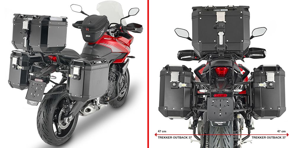 PLO...CAM - trubkový nosič PL ONE-FIT pro bočních kufry řady OBKN 37/48 celohliníkové. Má čtyřprvkové uchycení kufru k nosiči, je velmi stabilní, průměr trubky nosiče 18 mm. Kufry kupte samostatně v sekci Zboží - kufry GIVI - Monokey boční (OBKN37/48A, OBKN37/48B, GRT 709). Nosiče lze předělat na rychlosundávací pomocí sady 07RKIT (sadu kupte samostatně). Lze montovat samostatně bez horního nosiče 6421FZ při použití sady 6421KIT. Pasuje i na Triumph Tiger Sport 800 (25).