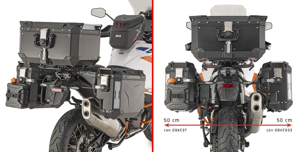 PLOS...CAM - trubkový nosič PL ONE-FIT pro bočních kufry řady OBKEVS33/OBKEVS40 s výřezem pro výfuk na pravé straně, celohliníkové. Má čtyřprvkové uchycení kufru k nosiči, je velmi stabilní, průměr trubky nosiče 18 mm. Kufry kupte samostatně v sekci Zboží - kufry GIVI - Monokey boční (vpravo OBKEVS33/OBKEVS40 + vlevo OBKEV37L/OBKEV44L). Lze předělat na rychlosundávací nosiče pomocí sady 02KIT. Na pravou stranu nosiče lze použít pouze kufr OBKEVS33A/AA/B a OBKEVS40A/AA/B. Pasuje na oba modely KTM 1290 Super Adventure S i R (21-25).