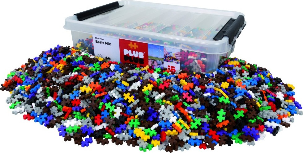 Praktický úložný box obsahuje celkem 3600 dílků Plus-Plus v základních barvách. Součástí je i brožura s konkrétními zadáními a úkoly pro děti. Vyrobeno v Dánsku, bez ftalátů, recyklovaný plast, snadná údržba. Rozměr boxu 40×30×12 cm. Ideální pro kolektivy. Vhodné od 5 let.