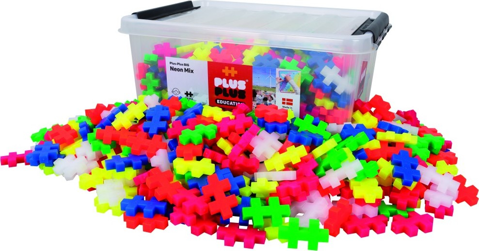 Praktický úložný box obsahuje 400 BIG dílků Plus-Plus v neonových barvách. Součástí je i brožura s konkrétními zadáními a úkoly pro děti. Vyrobeno v Dánsku, bez ftalátů, recyklovaný plast, snadná údržba. Rozměr boxu 40×30×19 cm. Ideální pro kolektivy. Vhodné již od 1 roku.