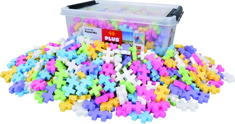 Praktický úložný box obsahuje 600 BIG dílků Plus-Plus v pastelových barvách. Součástí je i brožura s konkrétními zadáními a úkoly pro děti. Vyrobeno v Dánsku, bez ftalátů, recyklovaný plast, snadná údržba. Rozměr boxu 40×30×19 cm. Ideální pro kolektivy. Vhodné již od 1 roku.