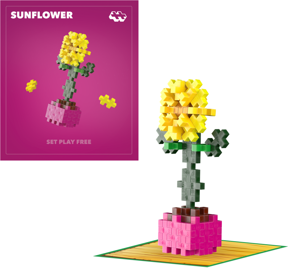 Plus-Plus Kytky Slunečnice obsahuje vše co potřebujete k pěstování s Plus-Plus. Atraktivní balení je inspirováno balíčkem skutečných semínek – stačí zatřepat. Vytvořte si vlastní slunečnici, která rozzáří i pochmurný den. Jedinečný designový prvek interiéru. Vyrobeno v Dánsku, bez ftalátů, recyklovaný plast, snadná údržba. Vhodné od 5 let.