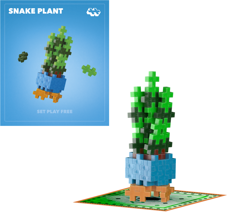 Plus-Plus Kytky Snake Plant obsahuje vše co potřebujete k pěstování s Plus-Plus. Atraktivní balení je inspirováno balíčkem skutečných semínek – stačí zatřepat. Ideální pro všechny, kdo milují minimalistickou estetiku a cool projekty. Jedinečný designový prvek interiéru. Vyrobeno v Dánsku, bez ftalátů, recyklovaný plast, snadná údržba. Vhodné od 5 let.