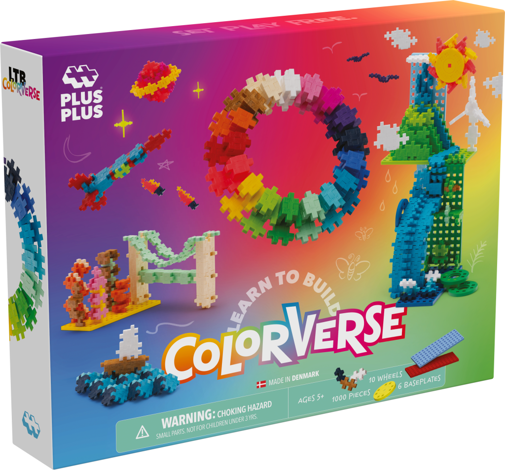 Plus-Plus Nauč se stavět Duhová super sada obsahuje celkem 1000 dílků, 6 podložek a 10 koleček, ze kterých můžete poskládat nejrůznější 2D i 3D stavby. Součástí balení je podrobný návod s konkrétními postupy. Vyrobeno v Dánsku, bez ftalátů, recyklovaný plast. Vhodné od 5 let.