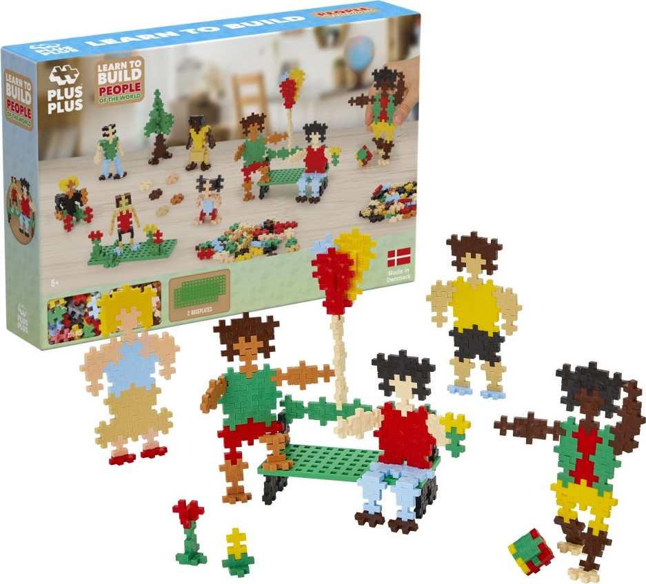 Kreativní sada PLUS-PLUS Nauč se stavět Lidé obsahuje 275 dílků. Umožní vytvářet postavy odrážející rozmanitost světa, ve kterém žijeme. Součástí balení jsou 2 malé základní desky.