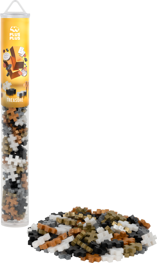 Kreativní sada PLUS-PLUS Poklad obsahuje 100 dílků v atraktivním balení tubusu, vhodném i na cesty. Můžete použít svou fantazii a postavit si vlastní Plus-Plus designy! Dílky v barvě zlatá, stříbrná, měděná, černá a perleťová. Vyrobeno v Dánsku, recyklovaný plast, vhodné od 5 let.