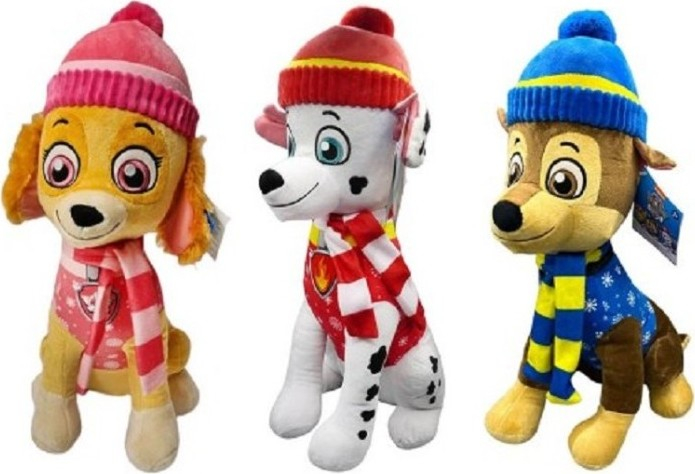 Plyšové figurky hrdinů ze seriálu Tlapková patrola v zimním oblečení. Velikost 50 cm. Tři druhy – Marshal, Skye a Chase.