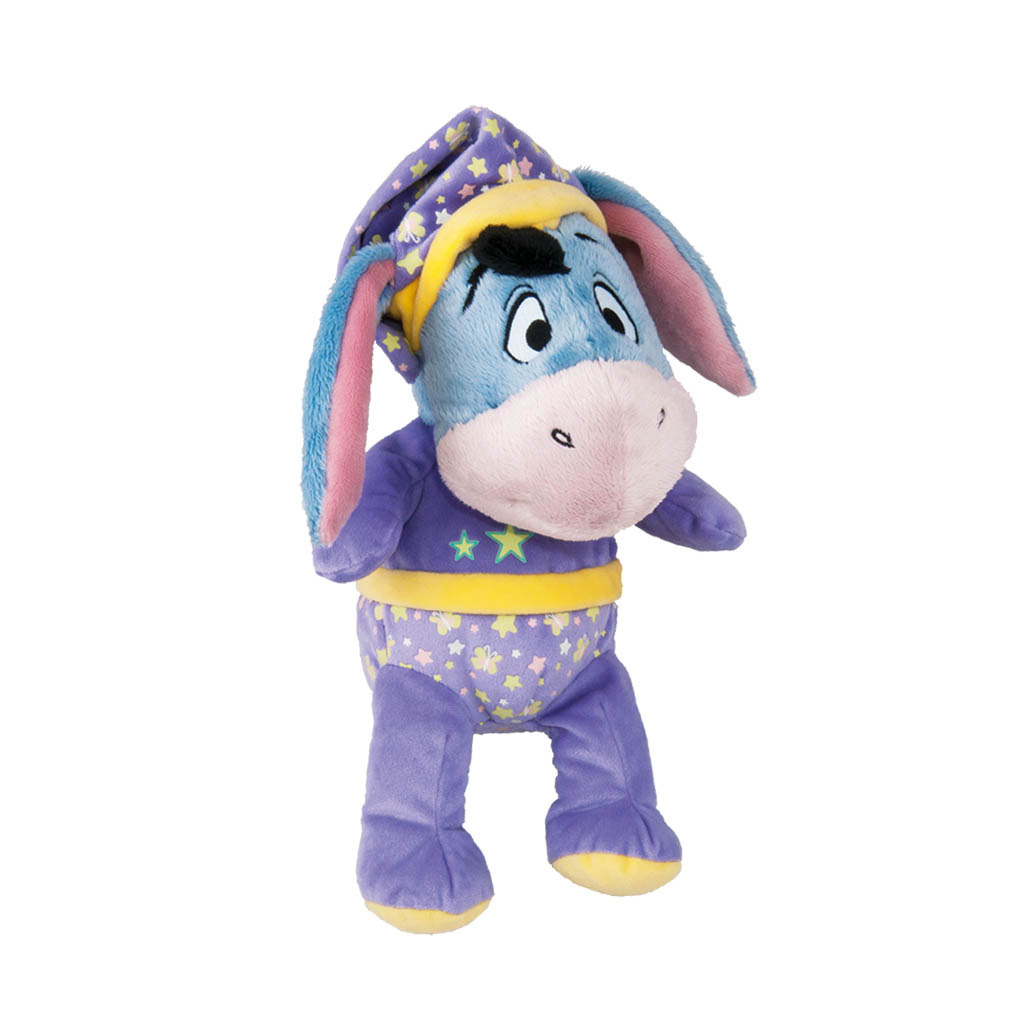 Známý oslík Ijáček do postýlky z jemného materiálu stylově oblečený v pyžamku, které díky speciálnímu potisku v noci krásně svítí. Děti si tak připadají v bezpečí a mají klidný spánek. Plyš je pratelná a vhodná pro děti již od narození.