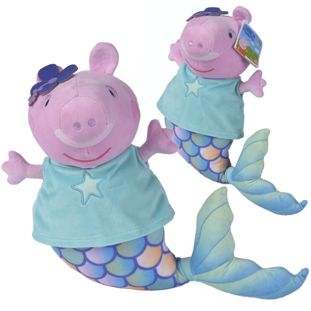 Objevte kouzelný svět Peppy Pig s touto roztomilou plyšovou mořskou vílou o velikosti 30 cm! Peppa Pig se tentokrát proměnila v mořskou vílu s barevným ocasem a krásným, třpytivým vrškem. Tento měkký a příjemný plyšák je ideální pro všechny malé fanoušky Peppy, kteří si rádi užívají její dobrodružství ve vodním světě.Vyrobeno z kvalitního materiálu, který je jemný na dotek a ideální pro mazlení. Tento plyšák je skvělý jako dárek nebo pro každodenní hraní.