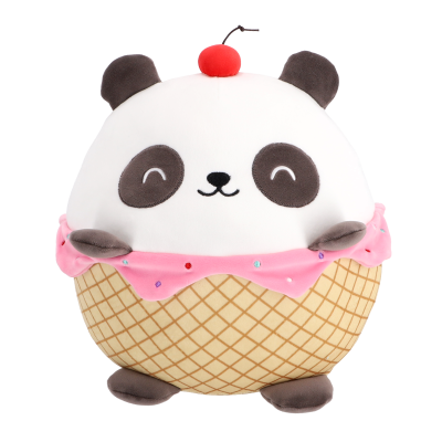 Plyšové jídlo ve tvaru zvířátka. Velikost 30 cm, 3 různé verze – makaranový jednorožec, hamburgerový medvěd a zmrzlinová panda.