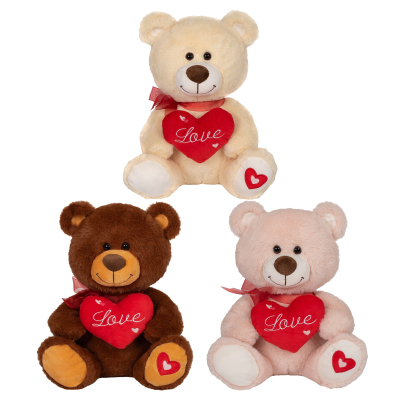 Měkký plyšový medvídek o velikosti 30cm držící červené srdíčko je perfektním dárkem pro vaše blízké k Valentýnu, výročí nebo jen tak pro vyjádření náklonnosti. Vyroben z příjemného, hebkého materiálu, který láká k pomazlení. Díky své velikosti je vhodný jak na