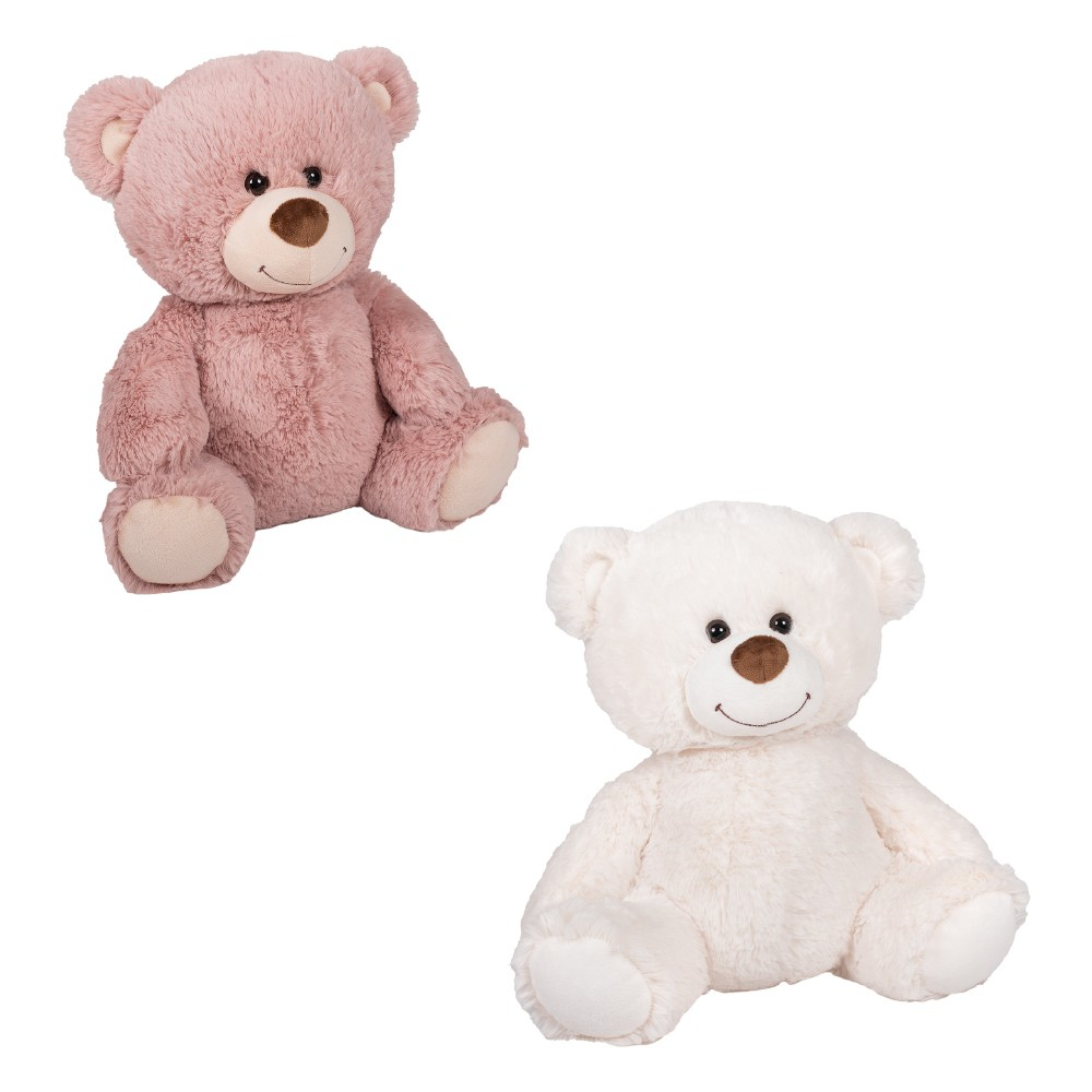 Plyšový mědvěd sedící – ve dvou barevných provedeních – bílý a starorůžový. Velikost medvěda je 33 cm. Vyrobeno z kvalitní a jemné plyše.